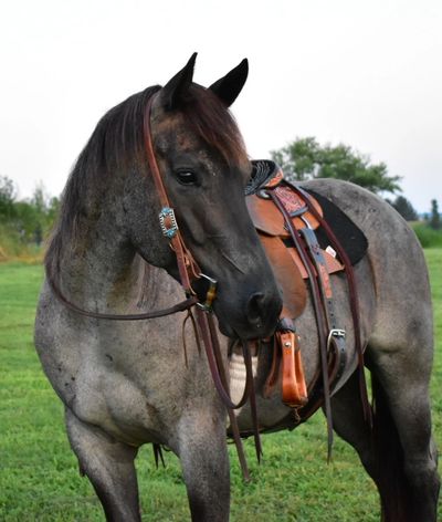 💥💥Looking for your next riding partner?! Jolene is a 2021 registered AQHA blue roan mare. Not only is she beautiful to look at she is kind, sweet and has endless potential! She is super quiet, been ridden by children, trail rides like a dream, goes over logs through water and loves to swim! Shes parcipated in camps, done a little roping, a little bit of sorting and obstacle courses. Quiet enough to do up down lessons.