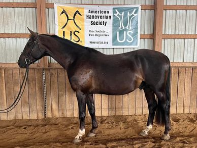 Secret is our junior stallion prospect. He is registered dark bay/black 2022 Hanoverian colt and we will do some test breedings Secret is by the famous Hanoverian stallion Sir Wanabi out of Hanoverian mare Dream Date who is by Don Davidoff. He had been shown lightly on the line is a big floaty hunter mover with an exceptional temperament. Expected to finish around 16.1+ hands. Inquire if interested in a test breeding. We are expecting 3 2026 foals from him!